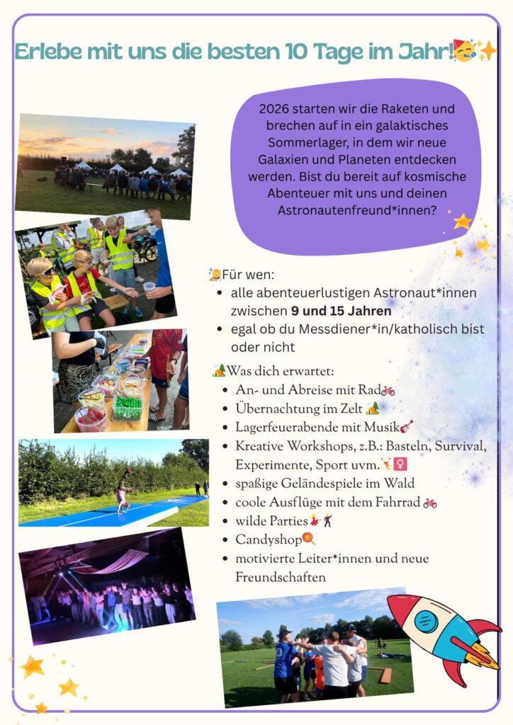 Falls noch Fragen zum MeSoLa offen sind, können Sie diese gerne an einer unserer Informationsveranstaltungen stellen oder Sie uns eine Mail an lager.messdiener-laggenbeck@gmx.de. Die Termine zu diesen Veranstaltungen werden wir Ihnen rechtzeitig bekannt geben. Darüber hinaus besteht auch die Möglichkeit sich online zu informieren. Neuste Informationen und Lagerberichte über das MeSoLa können immer hier auf unserer Homepage (www.messdiener-laggenbeck.de) und auf unserem Instagram Account (@messdienerlaggenbeck).